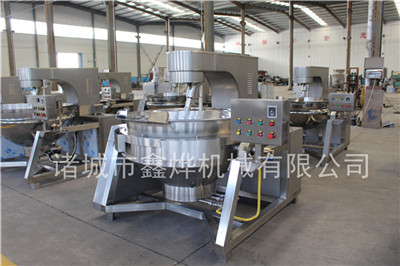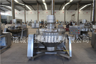 本設(shè)備有四頭攪拌、五頭攪拌和七頭攪拌,根據(jù)炒鍋容積和物料性質(zhì)來決定攪拌頭的數(shù)量。無需人工翻炒,鍋體液壓傾斜高位自動出料,設(shè)備有專門的進(jìn)料料斗,可以裝配乳化器。