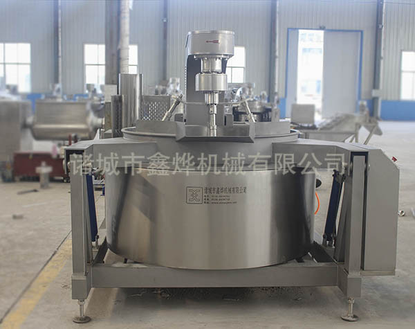 本設備有四頭攪拌、五頭攪拌和七頭攪拌,根據炒鍋容積和物料性質來決定攪拌頭的數量。無需人工翻炒,鍋體液壓傾斜高位自動出料,設備有專門的進料料斗,可以裝配乳化器。