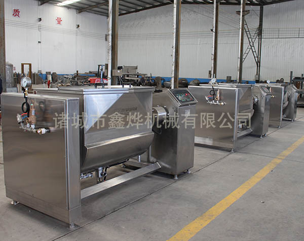 本機的U形鍋頂部抽真空,夾套采用蒸汽加熱,無段變速與蝸輪,減速機的組合傳動,增大了橫軸攪拌的力矩,采用食品級材質(zhì)材質(zhì)刮板的攪拌器,在物料的翻滾攪拌過程中,攪拌器與鍋體的充分接觸,確保了無攪拌死角。鍋體的開蓋,卸料,復位采用液壓,機械傳動控制,操作方便。真空炒制可降低炒制溫度,特別適應(yīng)于高粘度材料的炒制,避免了因過度受熱引起色澤及口味的變化,保持了物料原有的色香味。提高了炒制效率,并降低能耗,縮短了炒制時間。
